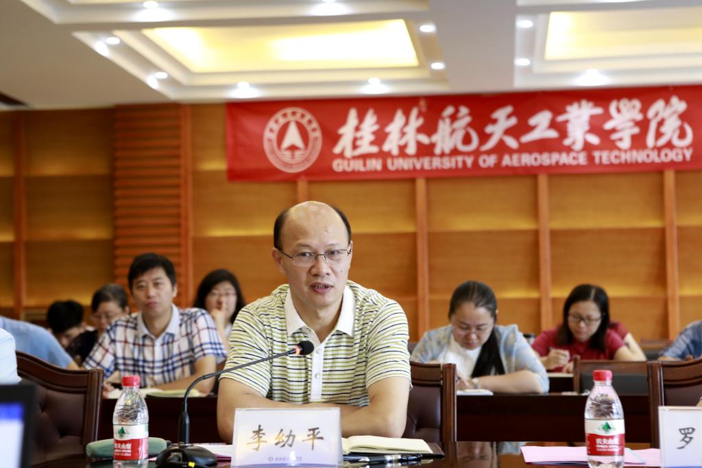 在汇报会上,党委书记李幼平致欢迎词并指出,学校高度重视思想政治理论课建设,具体体现在两个方面,一是重视学习PA官方网站总书记系列重要讲话精神和治国理政新思想新理念新战略;二是2016年度学校获得了航天文化研究中心这一广西人文社科重点研究(培育)基地,学校依托航天文化资源,不断探索创新思想政治理论课教育教学。并表示,学校党委将一如既往地重视思想政治理论课的建设,希望专家们给学校思政课建设多提宝贵意见和建议,促使我们思想政治理论课建设工作再上一个台阶。思政部罗展鸿就我校近年来思想政治理论课建设取得的成效、存在的问题以及今后的工作思路向专家组一行做了详细汇报。
