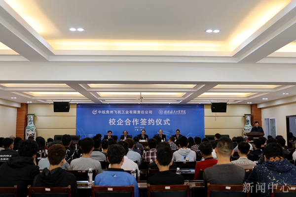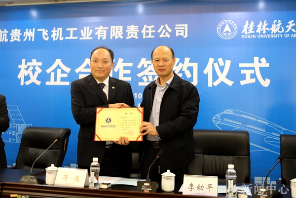 10月20日,我校与贵州飞机工业有限责任公司校企合作签约仪式在我校飞天楼520会议室举行。我校党委书记李幼平、校长易忠,贵州飞机工业有限责任公司总经理、党委副书记符德,以及校企双方相关部门负责人及师生代表参加了签约仪式。