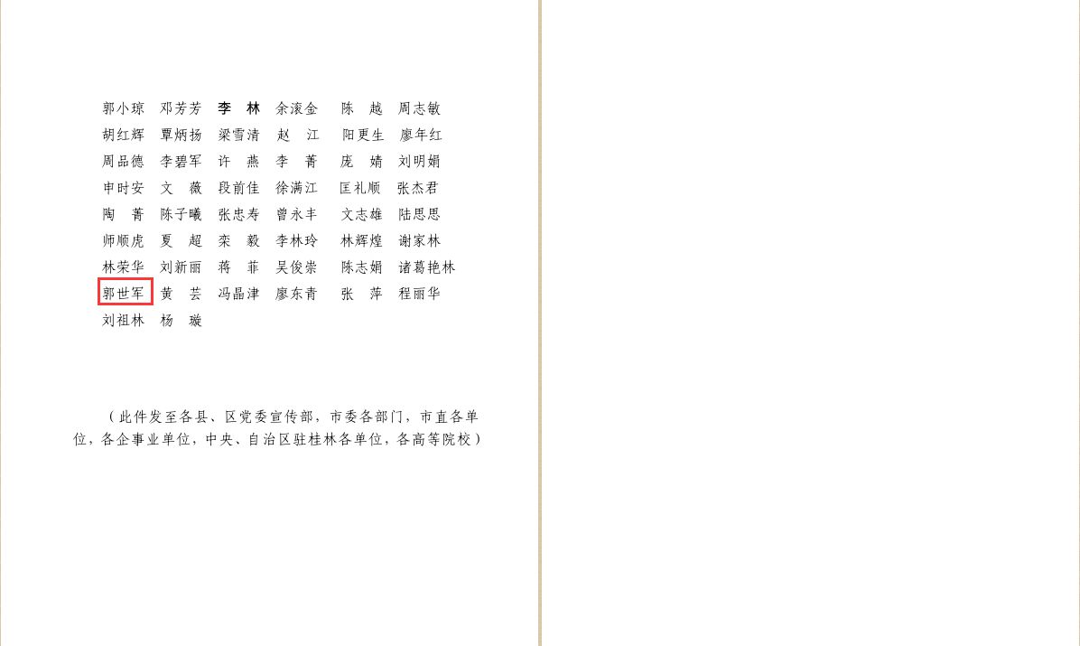 近日,桂林市委宣传部印发《关于表扬2017年度重点党报党刊发行和征订工作先进县区、先进单位、先进个人的决定》,我校获评“2017年度重点党报党刊发行和征订工作先进单位”,郭世军同志获评“2017年度重点党报党刊发行和征订工作先进个人”。
