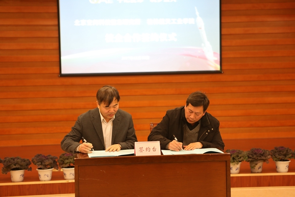 高校代表,北华航天工业学院党委书记郝玉龙在讲话中对我校培养出来的大批优秀人才表示肯定,并且希望两校能加强学习,加强沟通。联合各方力量,共同推动航天事业的发展。