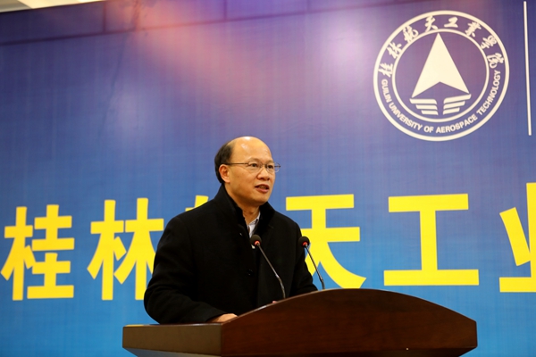 航天系统代表、中国航天科技集团人力资源部副处长冯胜平讲话中希望桂航能够不断推进航天文化和人才培养的深度融合,为弘扬航天文化和培养人才作出更大的贡献。航天科技公司也将持续加强与学校合作平台的建设,持续加大与学校协助育人的力度。在科学研究,学科建设等方面给予更大的支持。