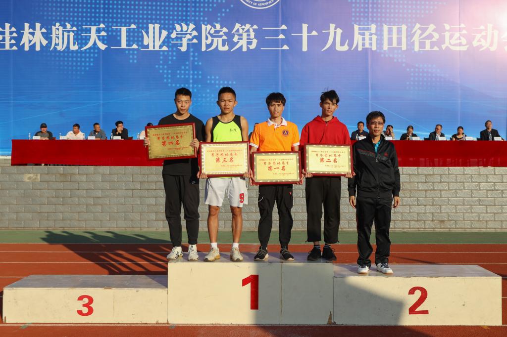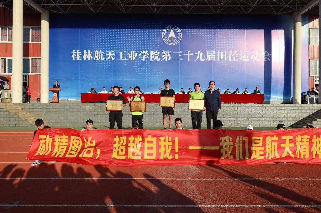 本次田径运动会总裁判长高大千宣布本届运动会的竞赛成绩:电子信息与自动化学院以258分摘得男女团体桂冠,能源与建筑环境学院和机械工程学院分列亚季军。学校领导分别为获奖的集体颁奖。