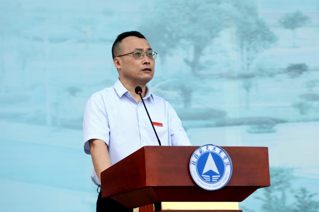 校长吴尽昭发表题为《逐梦蓝天 筑梦桂航》的讲话,他表示,桂航诞生于改革开放浪潮奔涌之春,依托航天办学、依托工业兴学,秉承“艰苦奋斗 自强日新”的精神,实现了办学层次、办学规模、办学空间三个重大突破。学校始终坚守“为航天培养专门人才”初心,以航天精神铸魂,航天文化育人,培养了数以万计的航天人才。顺利通过教育部本科教学工作合格评估,跻身广西一流学科方阵,获批专业型硕士立项建设点3个,国家一流专业建设点2个、区级一流专业建设点11个。桂航致力于每一位学子的成长成才,必将为大家的全面发展铺就好扎实的成才路。