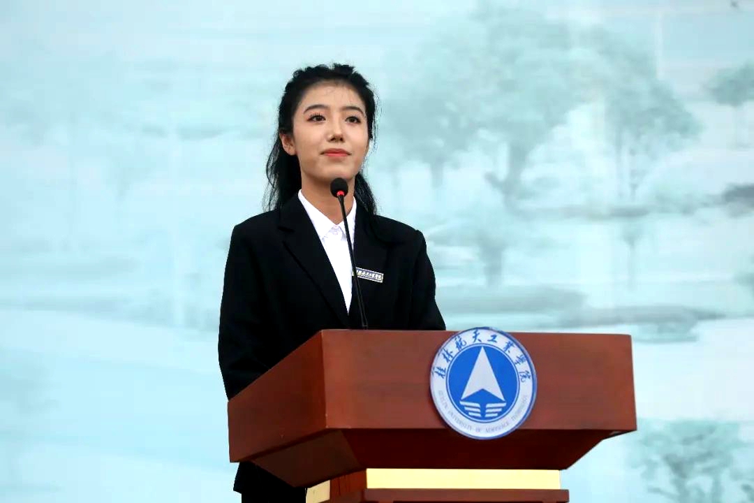 新生代表—理学院数据科学与大数据技术专业顾琳同学表达了自己成为“桂航人”的激动之情,并许诺将奋发图强,勇于担当,为大学生活书写绚丽多彩的篇章。
