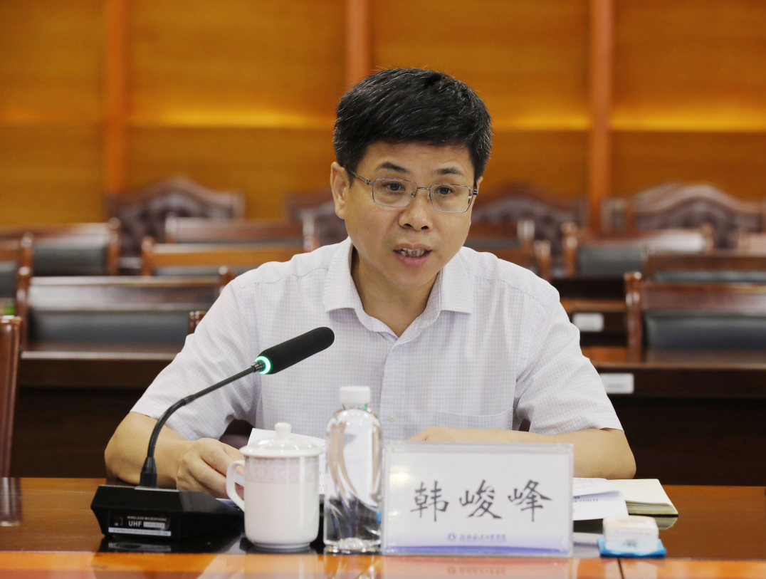 韩峻峰代表学校对闫炳辰一行莅校调研指导表示热烈欢迎,对自治区教育厅长期以来给予我校的关心、支持和帮助表示衷心感谢。他简要介绍了学校的历史沿革、办学定位、办学特色等方面情况,报告了学校面临的实际困难,希望自治区教育厅能够继续给予我校支持、帮助。他表示,学校将继续发扬自身优势,加快补齐短板弱项,服务国家与区域经济发展,加快推动高水平应用型大学建设各项事业实现新突破。