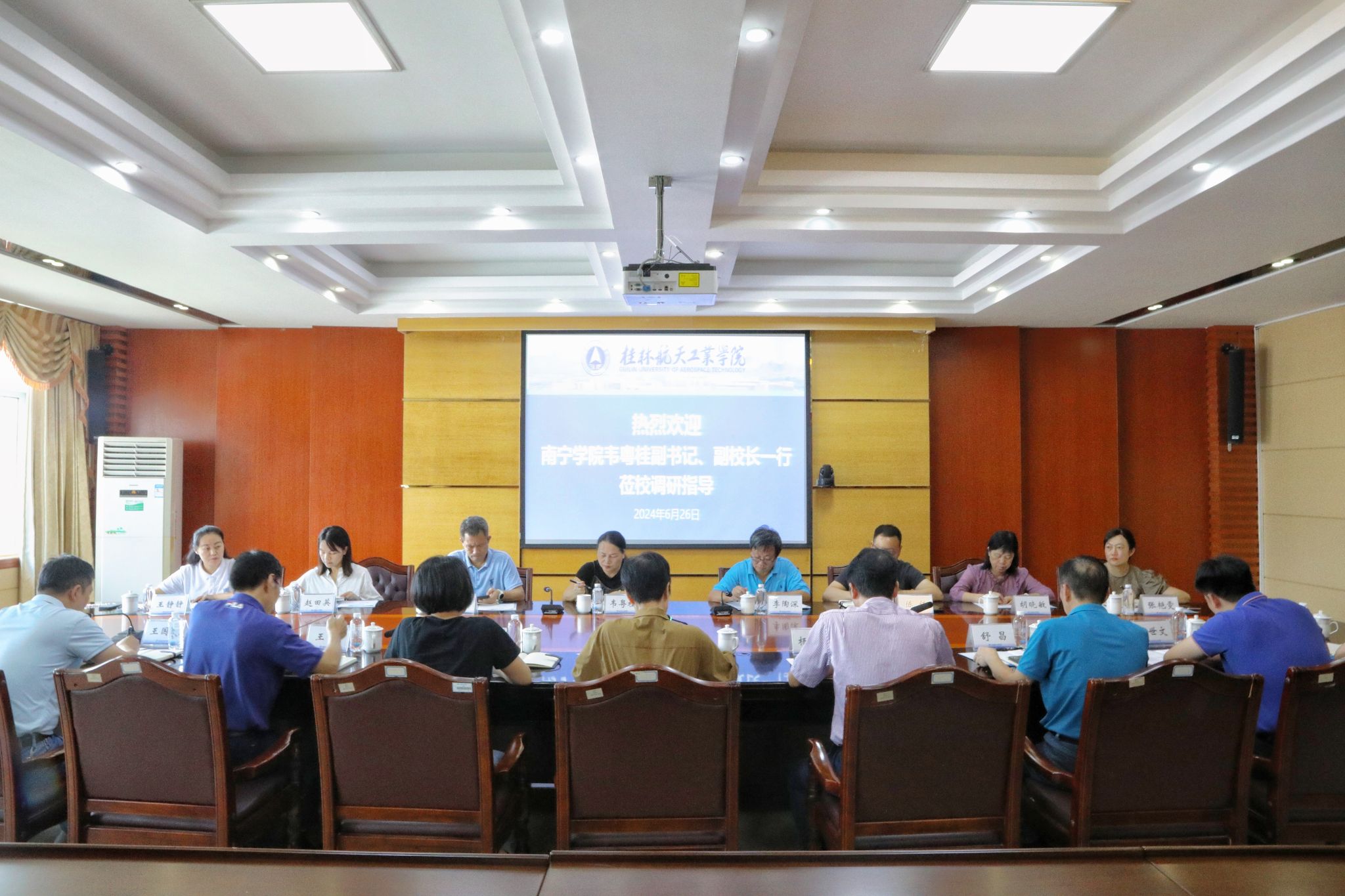 6月26日下午,南宁学院党委副书记、副校长韦粤桂,副校长李陶深一行8人莅临学校调研交流。我校党委副书记、纪委书记吴江萍,副校长葛莉接待了来访客人。党校办、学工处、人事处、教务处、科技处、机电工程学院相关负责人参加座谈。