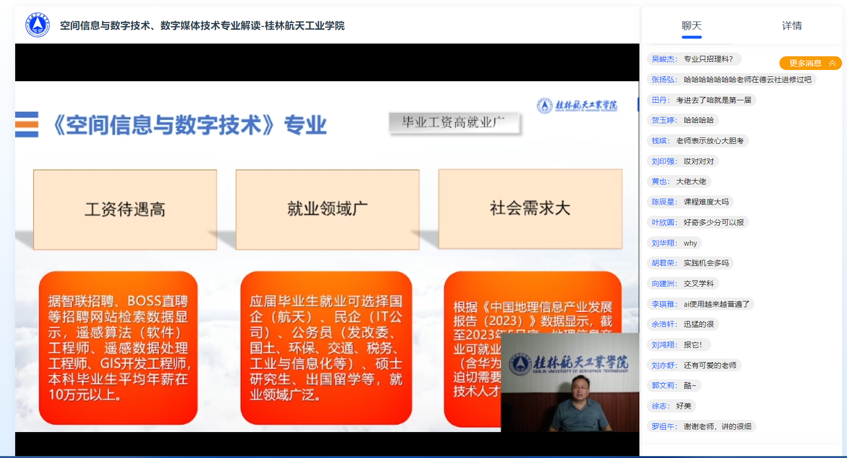 为方便考生和家长了解桂航、选择桂航,2024年高考招生季,在各部门、各学院、各专业大力支持下,我校组建了10余支线下招生宣传团队赴区内4个地市咨询会、37所生源高中、区外8个主要招生省份开展了现场招生宣讲和咨询活动。