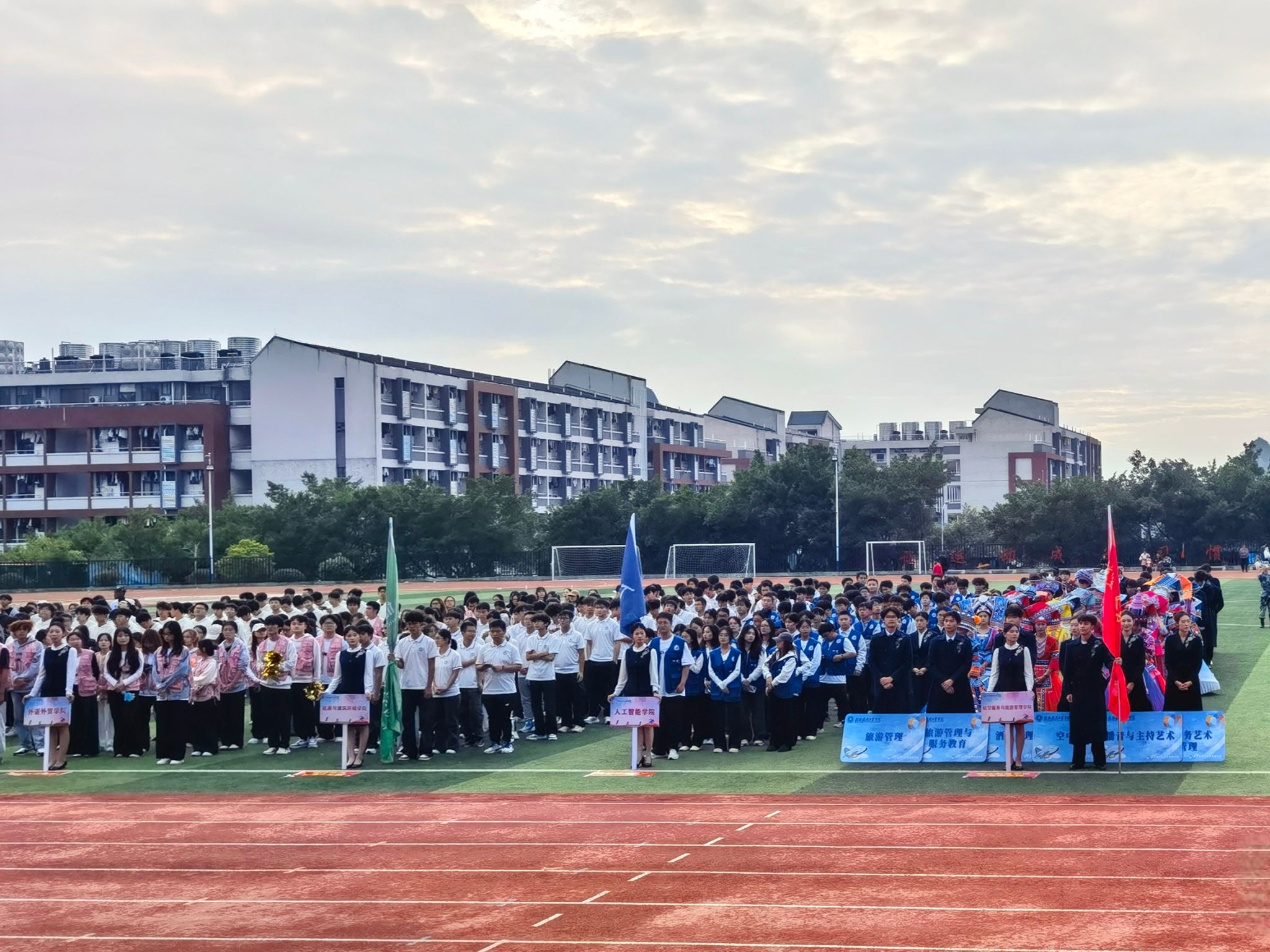 据悉,本届运动会共设有38个比赛项目,有13个学生代表队及22个教工代表队,共计600余名运动员参加。其中,汽车工程学院杜文宇打破男子铅球学校记录,能源与建筑环境学院文诺轩打破男子跳高学校记录。